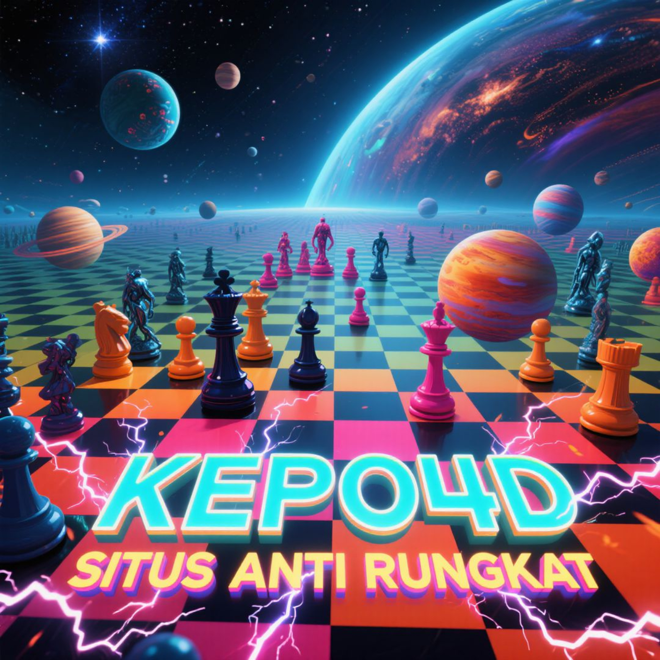 Di tengah semesta yang luas dan penuh misteri, sebuah papan catur raksasa terbentang dengan warna-warna neon yang mencolok. Planet-planet bertebaran, bintang bersinar terang, dan bidak-bidak catur berdiri tegap seolah sedang bersiap untuk pertarungan epik. Dalam lanskap futuristik yang fantastis ini, muncul satu nama yang bersinar terang dengan semburan petir warna-warni: KEPO4D – Situs Anti Rungkat.