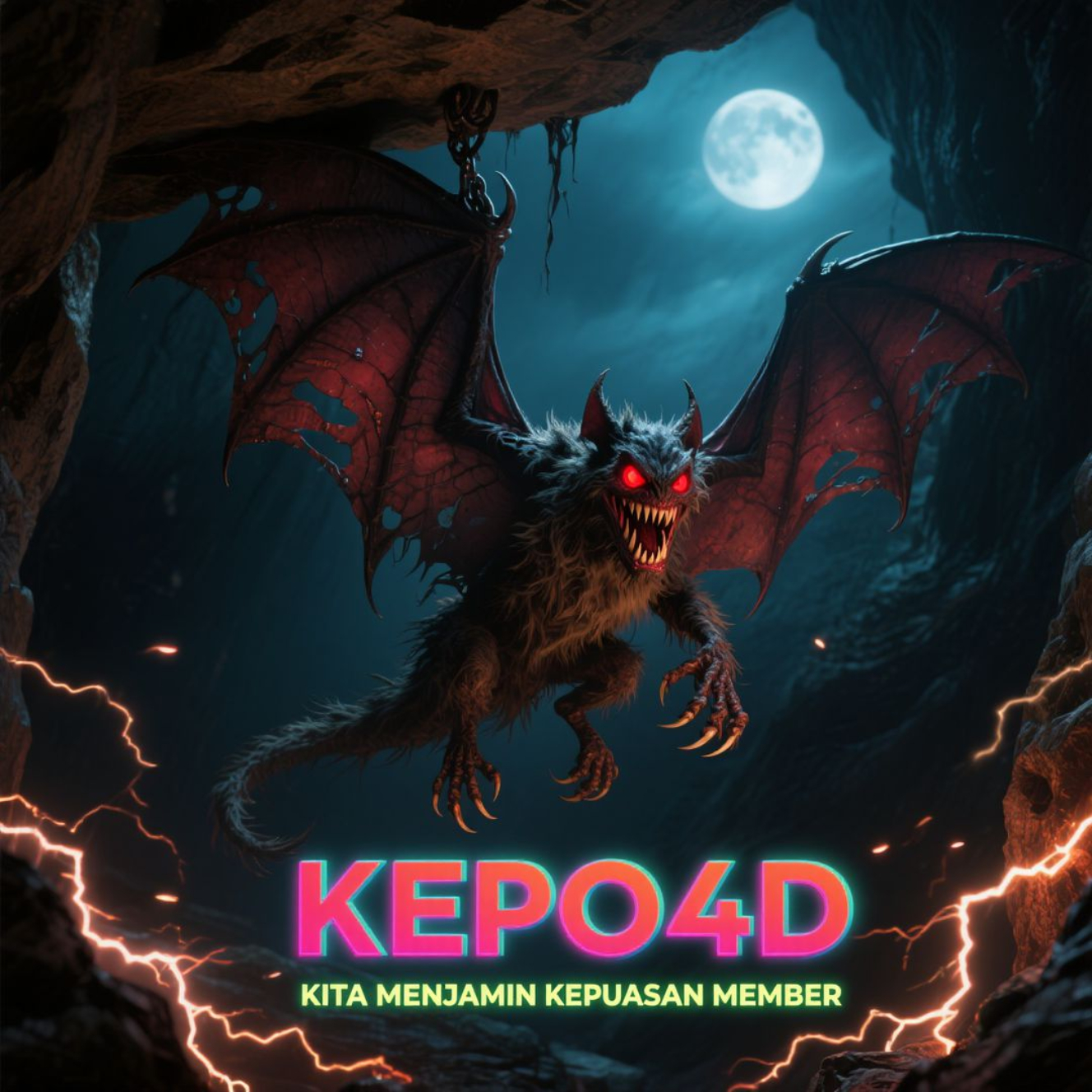 Makhluk tersebut tidak sekadar menjadi hiasan artistik. Dengan detail taring tajam, sayap sobek, dan rantai di langit-langit gua, visual ini mengesankan kekuatan tak terbendung yang siap menjaga atau bahkan melindungi sesuatu yang berharga. Di sinilah Kepo4D menanamkan makna: mereka adalah penjaga kepuasan para anggotanya.