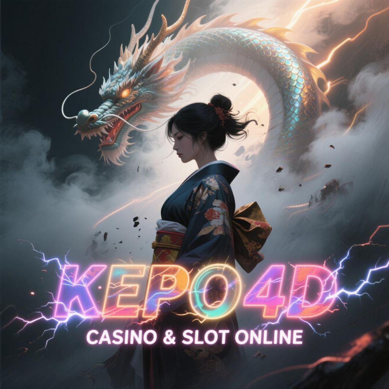 Dalam kepulan kabut dan ledakan cahaya petir, tampak sosok seorang wanita berbalut kimono elegan berdiri anggun namun penuh wibawa. Di belakangnya, seekor naga megah dengan sisik bercahaya meliuk di udara, siap menyemburkan kekuatan legendarisnya. Di bawah simbol kekuatan Timur itu, satu nama bersinar terang dalam warna-warna neon mencolok: KEPO4D — Casino & Slot Online.