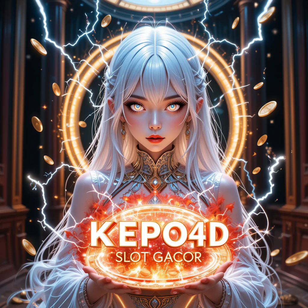 Gambar yang ada di depan Anda menggambarkan seorang wanita cantik dengan rambut putih panjang, mata berkilau, dan ekspresi penuh kekuatan. Kehadirannya memancarkan aura mistis, seakan-akan dia adalah dewi yang membawa energi positif bagi siapa saja yang bermain di KEPO4D. Di sekelilingnya, kilatan listrik dan koin yang berputar menggambarkan kekuatan yang luar biasa yang mengelilingi permainan ini. Teks besar bertuliskan “KEPO4D SLOT GACOR” berada di tengah, memantulkan kilau yang mengundang rasa ingin tahu.