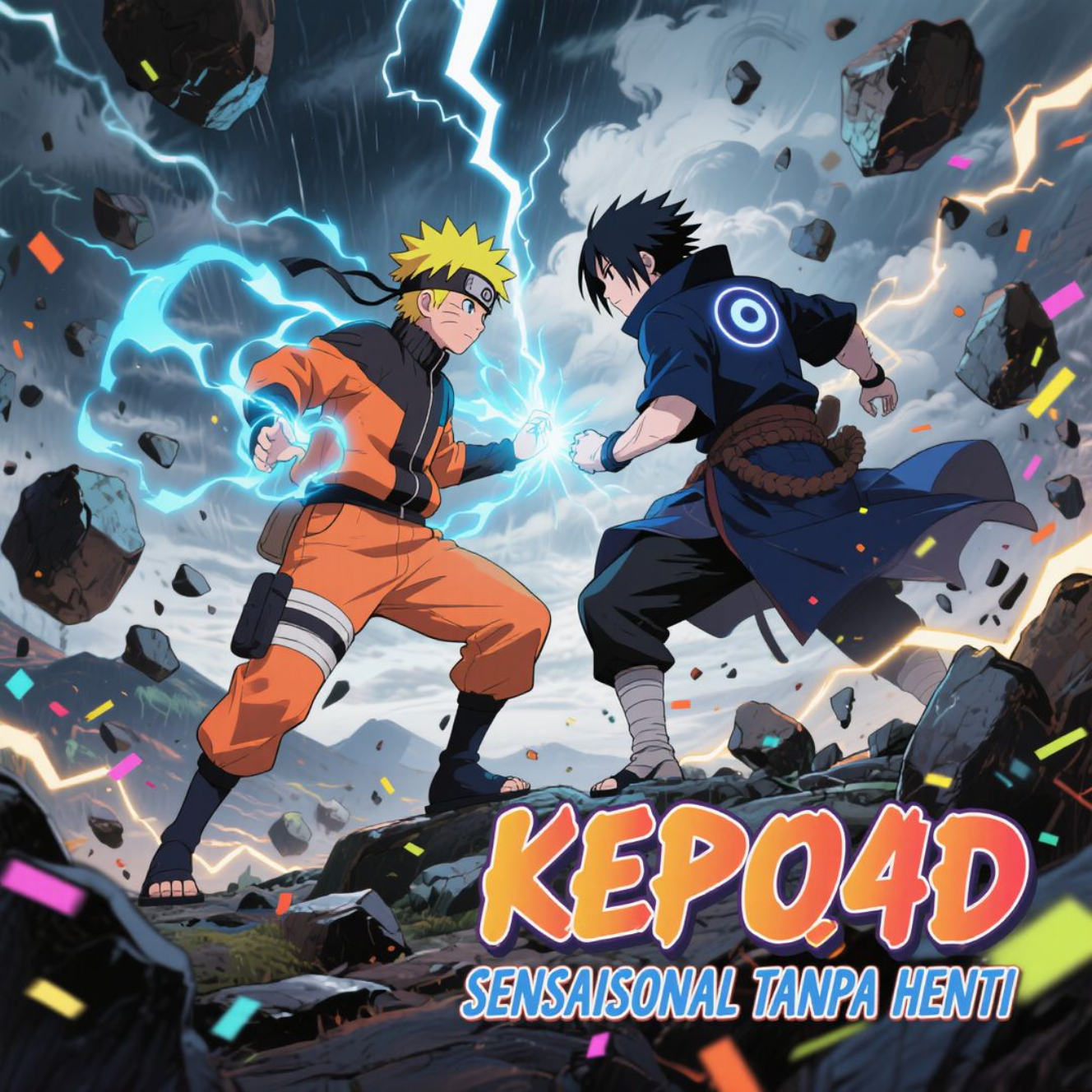 Dalam konteks pemasaran atau branding, seperti terlihat pada teks “KEPO4D – Sensasional Tanpa Henti”, simbol pertarungan ini bisa digunakan sebagai metafora untuk semangat pantang menyerah dan tekad untuk terus bergerak maju meski penuh rintangan. Dengan kata lain, energi visual Naruto dan Sasuke bisa diterjemahkan menjadi semangat kompetisi yang positif.