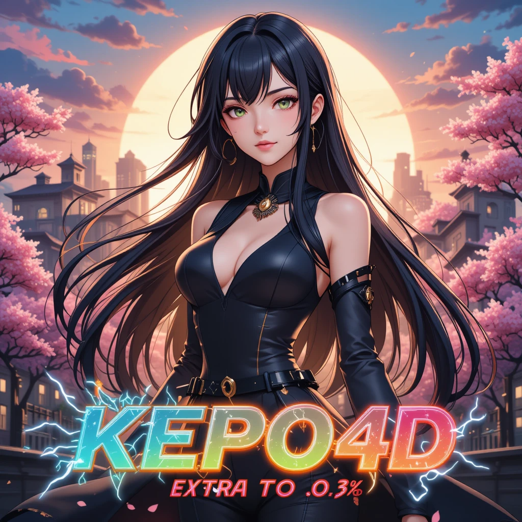 Gambar promosi ini menampilkan seorang karakter wanita berambut hitam panjang dengan mata hijau tajam, mengenakan busana hitam elegan yang memancarkan aura kekuatan dan misteri. Karakter ini bukan hanya hiasan, tetapi representasi visual dari tema KEPO4D: kekuatan, kecantikan, dan keberuntungan. Dalam banyak mitologi, malam adalah waktu di mana keberuntungan bisa berubah drastis—dan itulah yang ingin KEPO4D hadirkan lewat konsep ini.